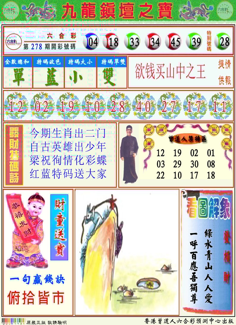279期: 【兔牛虎鼠蛇鸡狗羊马】 开? 00准